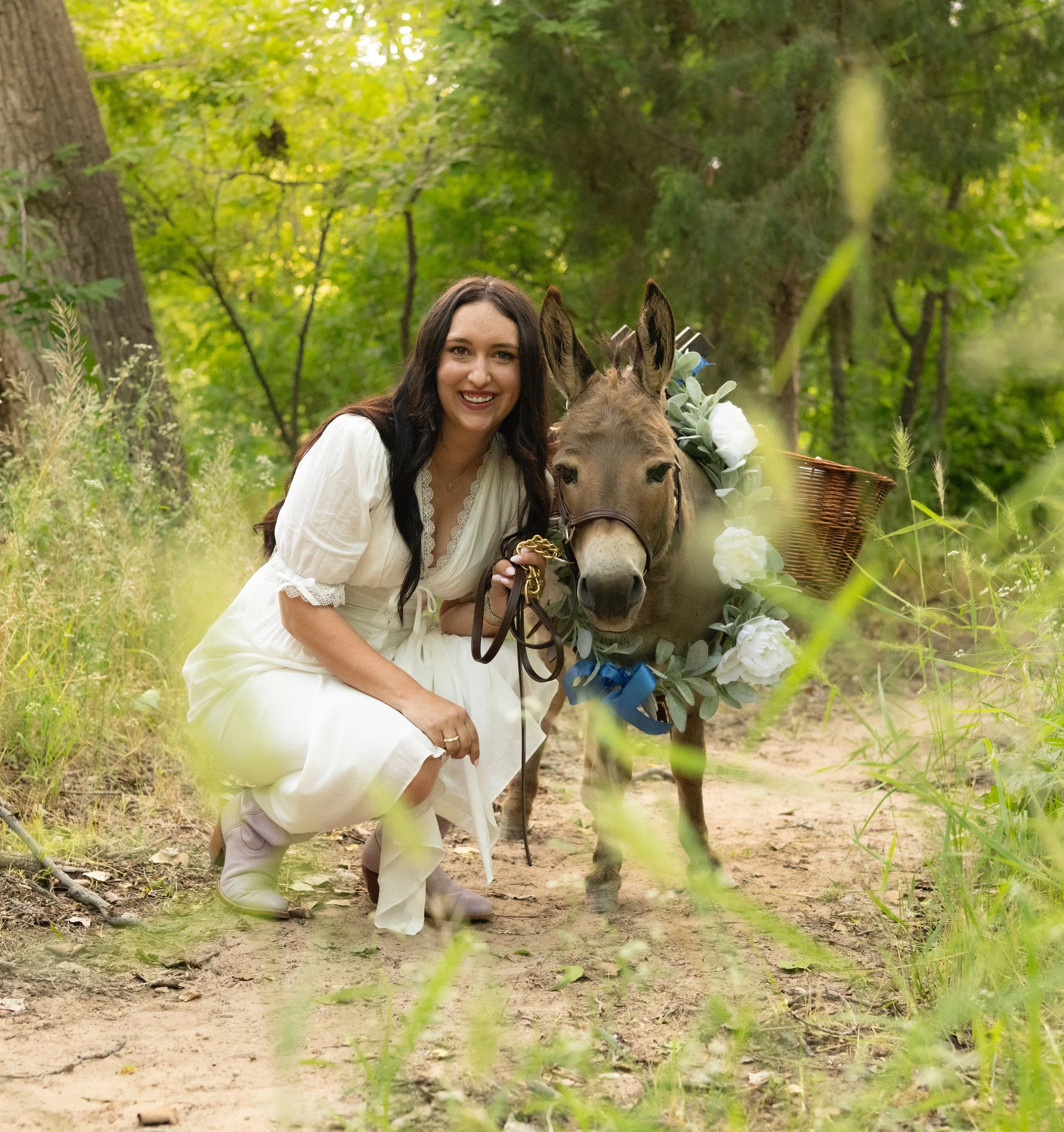 Perfect for weddings, birthday parties, graduation celebrations, quinceañeras, cocktail hours, corporate events or any occasion worth celebrating. These well-trained, friendly donkeys and ponies sprinkle joy wherever they go. Our tiny servers show up with big personalities and charm, making every gathering—or even a personal photoshoot at the farm—absolutely unforgettable.